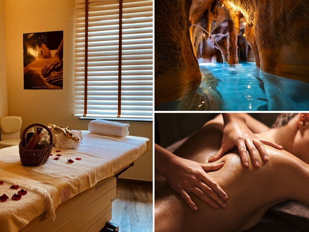 L’une des caractéristiques emblématiques des ‘chambres d’amour’ est la présence d’un jacuzzi, d’une baignoire spa privée, voire même d’un sauna infrarouge, d’un hammam ou d’une piscine privée, bien que beaucoup plus rare. Rien de tel que de se détendre dans un bain à deux tout en savourant une bouteille de champagne.